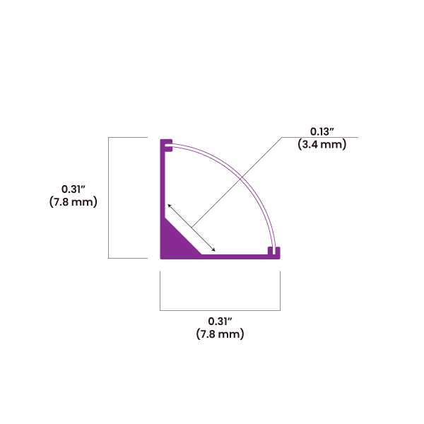 SS0808 is a compact, surface-mount LED profile ideal for tight-space and corner lighting applications. Its sleek, narrow form, measuring 0.31” (8mm) wide and 0.31” (8mm) high, and curved polycarbonate lens deliver smooth, uniform, dot-free illumination when paired with BL Flexform N Series LED tape. Field-cuttable construction and included mounting clips ensure easy installation, offering a refined lighting solution.