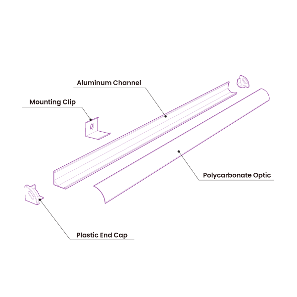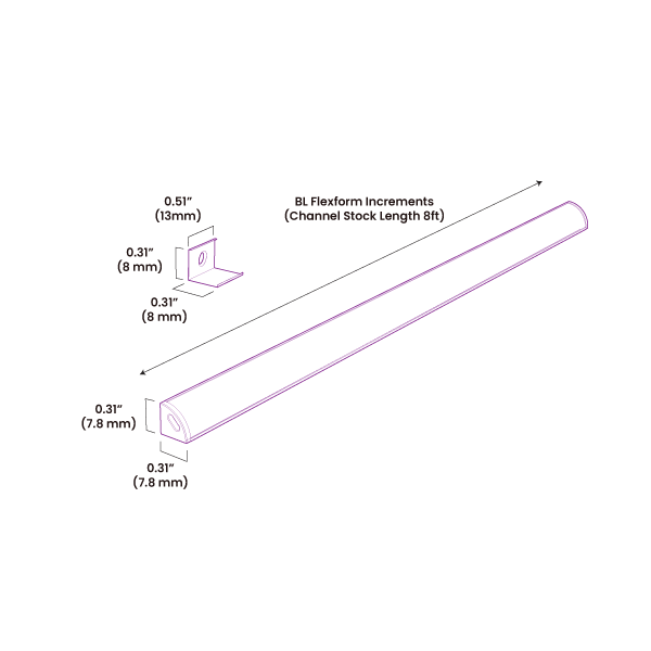 Customize your BL Flexform LED with one of our many channel profile options. Designed for easy integration into a broad spectrum of applications such as coves, cabinets, vanities, steps, railings, outlines, accents and display lighting, there is a BL Fixform channel available to fit any space. The solid aluminum base track is an excellent heat sink, protecting the LED while delivering a straight, even, line of light. Optional translucent lens optics uniformly diffuse and insulate the LED from dust and damage, while providing polished and professional results.
